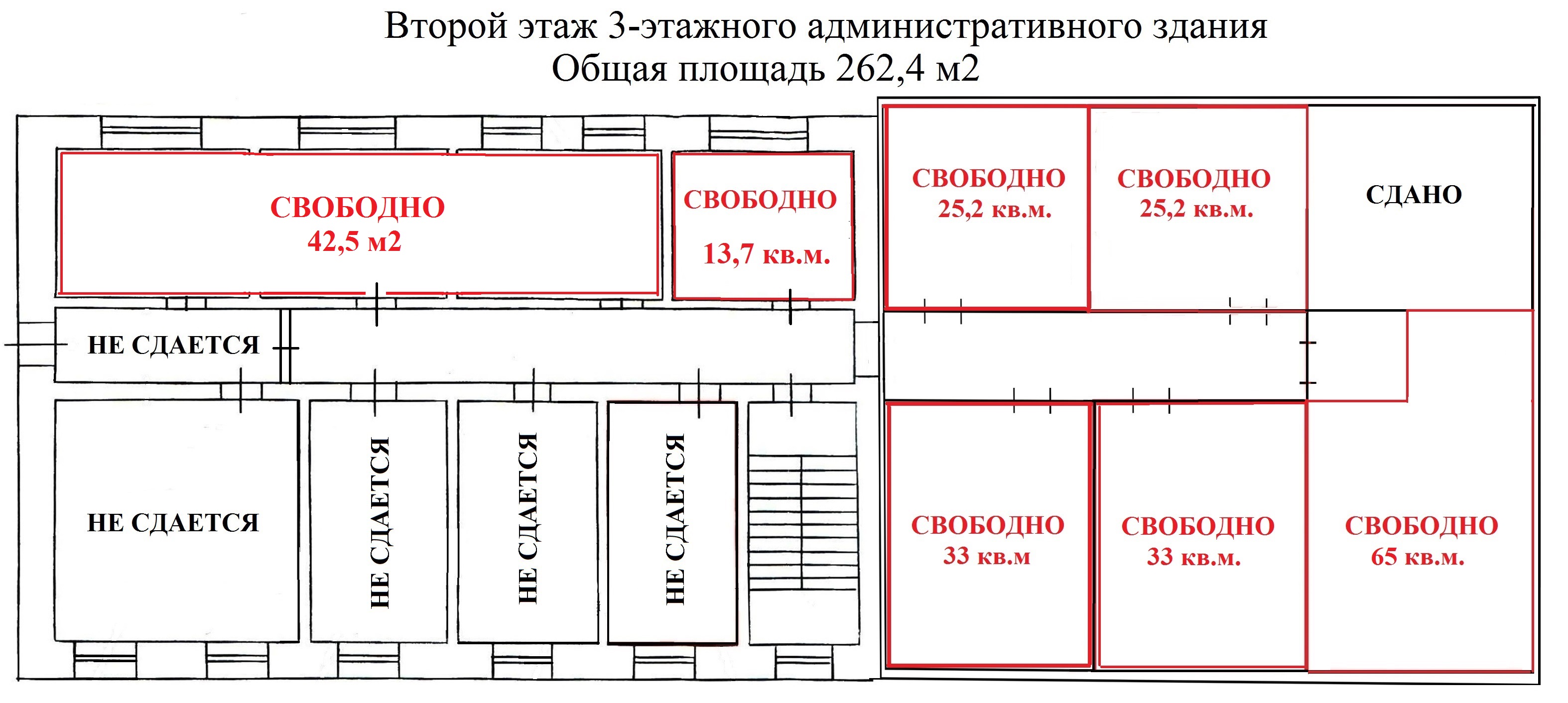 Есть свободные помещения от 15  до 600 квадратных метров